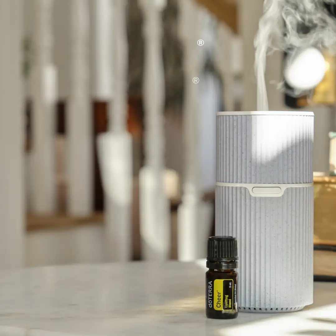 dōTERRA Cheer erfrischende Mischung aus ätherischen Zitrus- und Gewürzölen sorgt für einen heiteren Schub an Fröhlichkeit und bringt eine positive Einstellung, die jeden Tag erhellt.