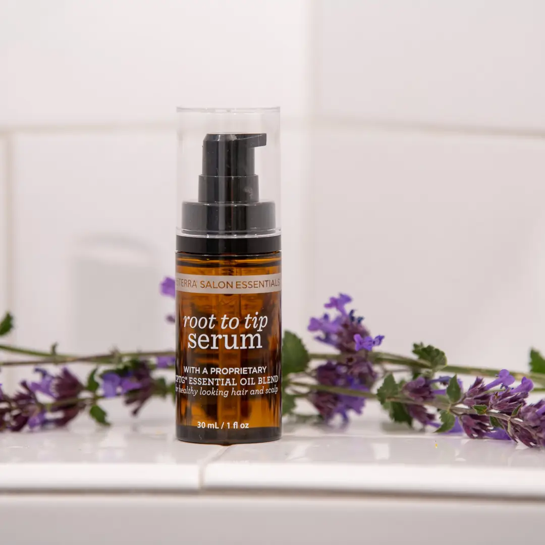 doTERRA Haarserum: Wurzel bis Spitze ist eine professionelle Rezeptur zur Förderung von glattem, glänzenden Haar und gesunder Kopfhaut, die mit ätherischen Ölen und nährenden Lipiden angereichert ist. Die sorgfältig ausgewählten CPTG® ätherischen Öle Lavendel, Pfefferminze, Majoran, Zeder, Lavandin, Rosmarin, Niaouli und Eukalyptus sind bekannt für ihre Fähigkeit, die Kopfhaut zu regenerieren und gleichzeitig das Haar gesund aussehen zu lassen. Dieses kraftvolle, leichte Serum spendet langanhaltende Feuchtigkeit, ohne das Haar zu beschweren oder fettige Rückstände zu hinterlassen.