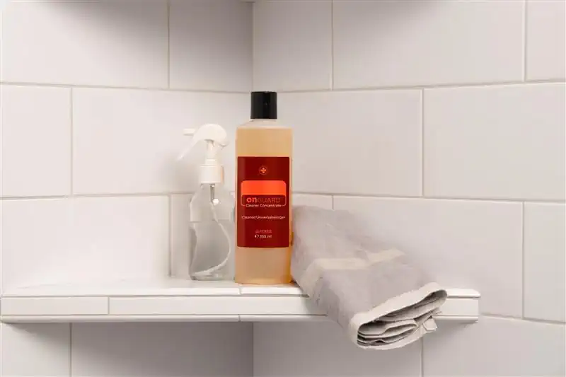 - Wenn Sie Ihr Badezimmer dem nächsten Großputz unterziehen, vermischen Sie 45ml dōTERRA On Guard Universalreiniger mit 3,75l Wasser und bearbeiten Sie damit Fliesen, Oberflächen, Badewanne und Dusche.