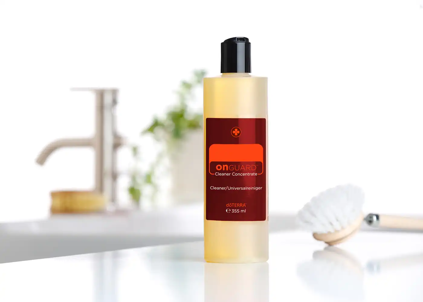 Der dōTERRA On Guard Universalreiniger ist das ideale alternative Reinigungsmittel. Es ist mit der geschützten dōTERRA On Guard Ätherischen Ölmischung aus den ätherischen CPTG™ Ölen Wild Orange (Wildorange), Clove (Gewürznelke), Cinnamon (Zimt), Eucalyptus (Eukalyptus) und Rosemary (Rosmarin) versetzt. Diese kraftvolle ätherische Ölmischung hilft, Ihr Zuhause sauber zu halten, denn sie wird mit zahlreichen Derivaten auf Pflanzenbasis kombiniert, die eine Möglichkeit zur Reinigung und Geruchsneutralisierung bieten, die für Sie und Ihre Lieben sicher ist. Der dōTERRA On Guard Universalreiniger hat vielseitige Eigenschaften, die ihn zum perfekten Oberflächenreiniger in der Küche, im Badezimmer und in jedem anderen Raum machen. Er hinterlässt überall einen frischen, belebenden Duft.