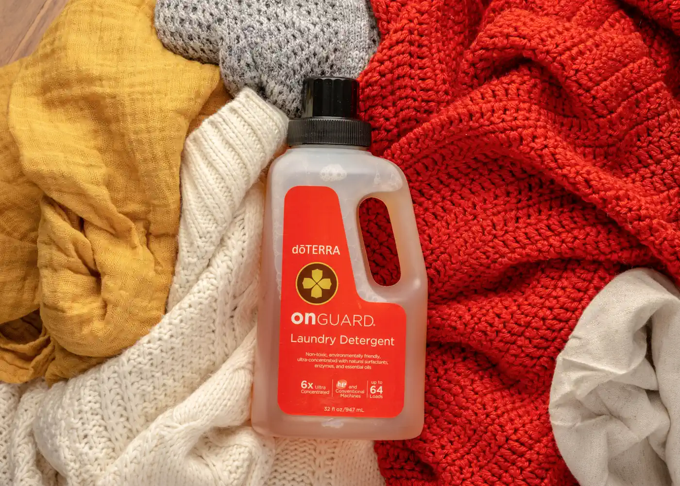 Das OnGuard Waschmittel von doTERRA ist ein ultrakonzentriertes 6-fach-Waschmittel, das die kraftvolle doTERRA On Guard-Schutzmischung beinhaltet. Jede Flasche Waschmittel enthält 10 ml dieser beliebten Mischung. Zusätzlich sind natürliche, biologisch gewonnene Enzyme enthalten, die effektiv Flecken aus Kleidung entfernen. Sämtliche Inhaltsstoffe, einschließlich Tenside und Stabilisatoren, sind pflanzlichen Ursprungs und somit biologisch abbaubar.