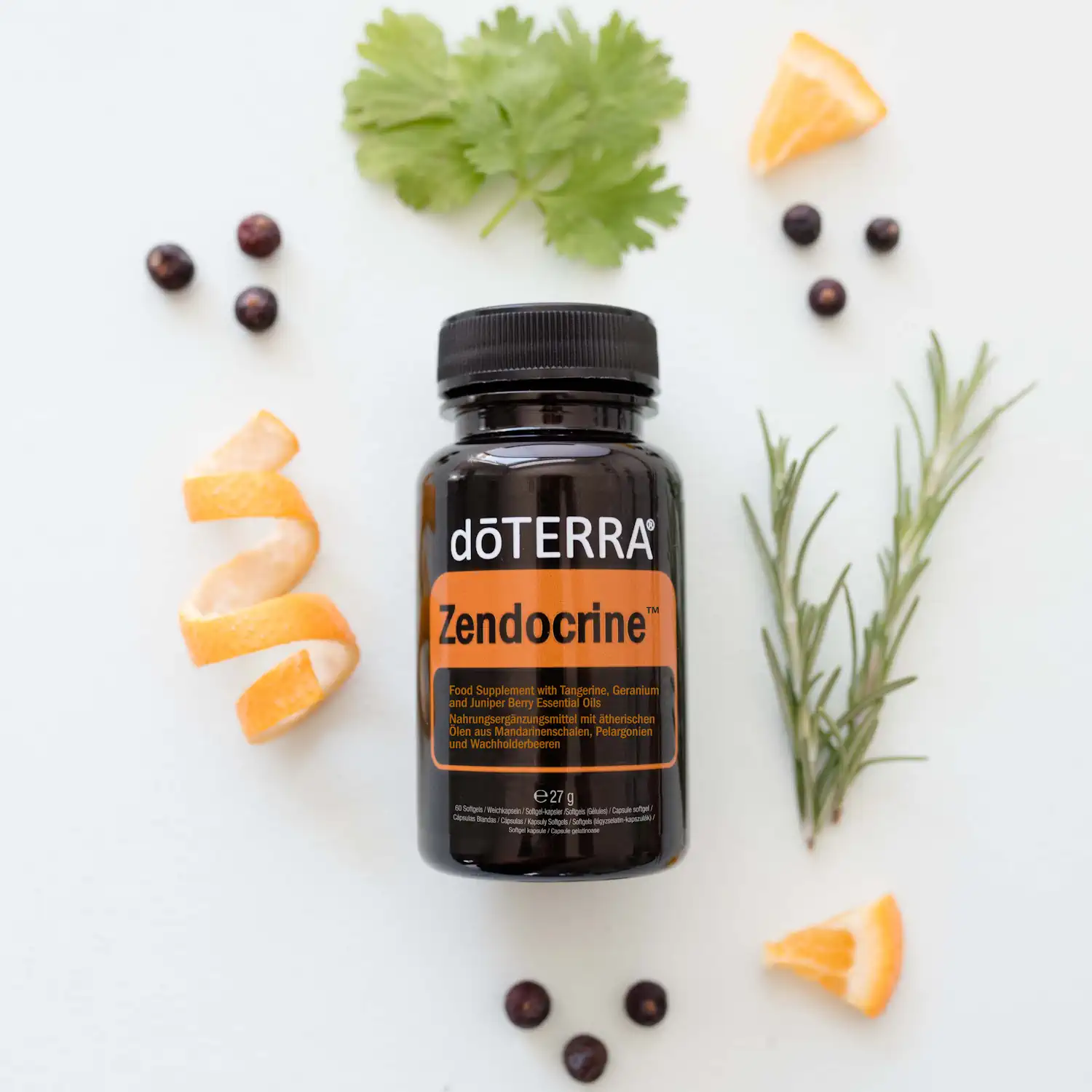 Zendocrine Softgels enthalten die doTERRA Zendocrine Mischung für den Neubeginn, eine geschützte Mischung aus den ätherischen Ölen Tangerine (Mandarine), Rosemary (Rosmarin), Geranium (Geranie), Juniper Berry (Wacholderbeere) und Cilantro (Korianderkraut). Zendocrine Softgels bieten eine schnelle und einfache Möglichkeit, die doTERRA Zendocrine Mischung für den Neubeginn einzunehmen, egal ob Sie auf Reisen oder in Eile sind oder einfach nur den Komfort eines Softgels mögen!