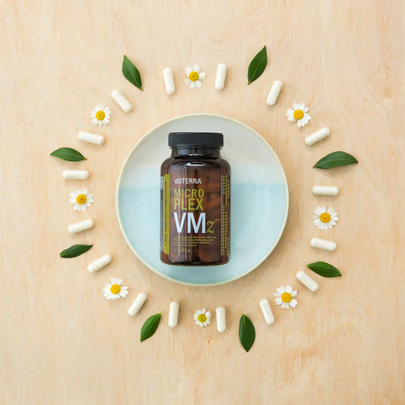 Der Nährstoffkomplex Microplex VMz™ von doTERRA enthält eine ausgewogene Rezeptur der essentiellen Vitamine A, C und E und einen B-Vitamin-Komplex. Microplex VMz enthält außerdem chelatierte Mineralien wie Calcium, Magnesium und Zink. Microplex VMz ist in Pflanzenkapseln ohne Natriumlaurylsulfat eingeschlossen.