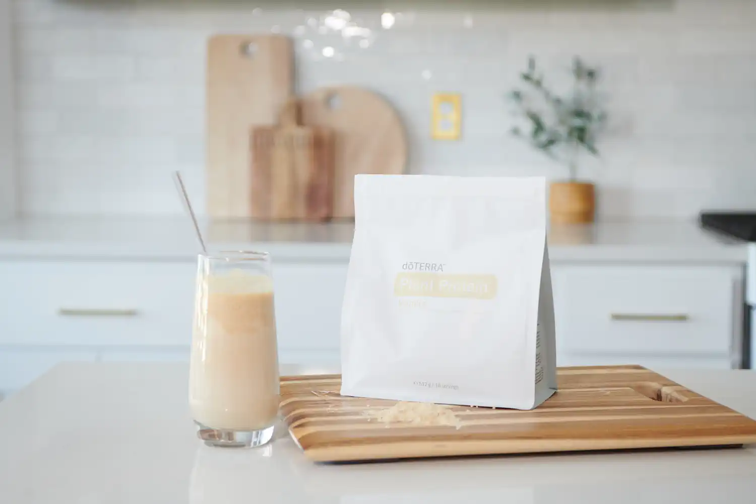 - Mischen Sie das doTERRA Plant Protein Vanille mit Wasser oder einer Milchsorte Ihrer Wahl.